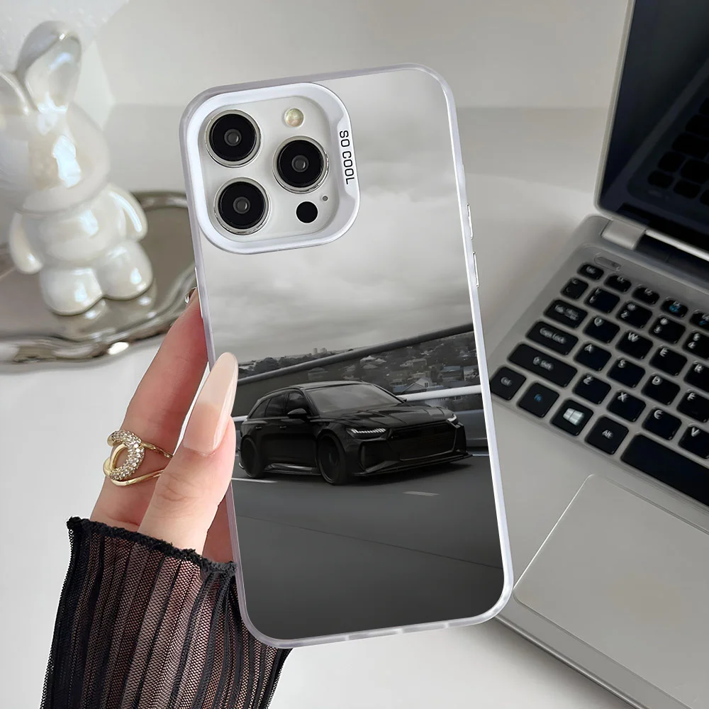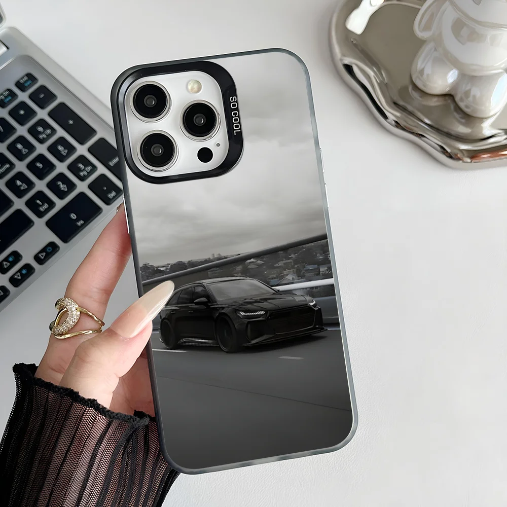 Epc A- Audi R8 RS6 RS7 Sports Car Phone Case IMD Phone Case For IPhone 16 15 14 13 12 11 Pro Max Plus Color Silver Cover